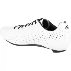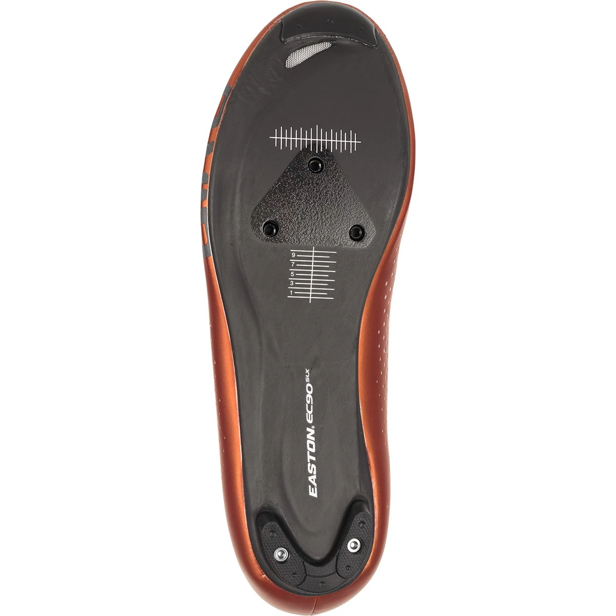 Starting at the uppers, they were wrapped with one piece of Evofiber microfiber. This fabric is exceptionally lightweight and highly breathable, featuring perforations for added cooling. This contributes not only to the sleek, wind-cheating profile, but it also reduces weight. And while the shoes might not appear to be very supportive, the opposite is actually true. Because of the flexibility of the microfiber, as well as the classic lace system, the shoes are able to be tied so that they fit your feet like a second skin. Adding to this is the ultralight and ultra-stiff Easton EC90 ACC Carbon Sole. One of the stiffest soles in the industry, it features a low 6.5mm stack height that mates with the uppers for unrivaled power transfer. The lower the stack height, the closer the cleats, and thereby your feet, are to the pedals. This minimizes power loss that occurs with thicker cleat plates.